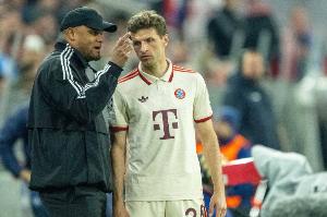 在将近17年之后,作为拜仁主帅的孔帕尼则通过换人决定,也在现场亲身见证了穆勒的第500次德甲出场。